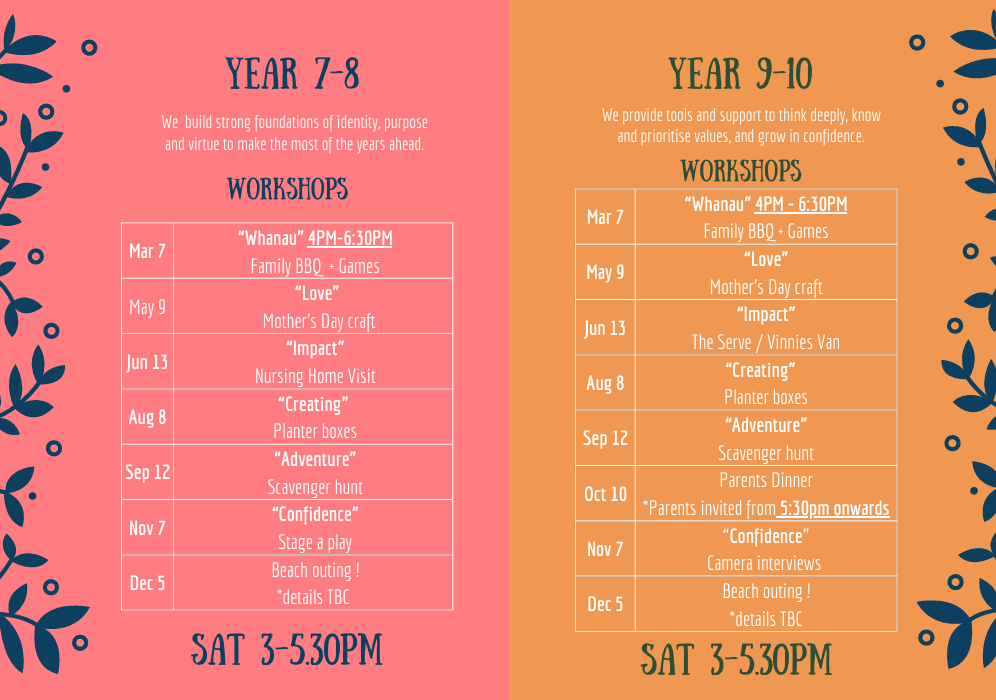 These will take place in the April, July and September/October school holidays for each SHE Leads group. Details TBC.